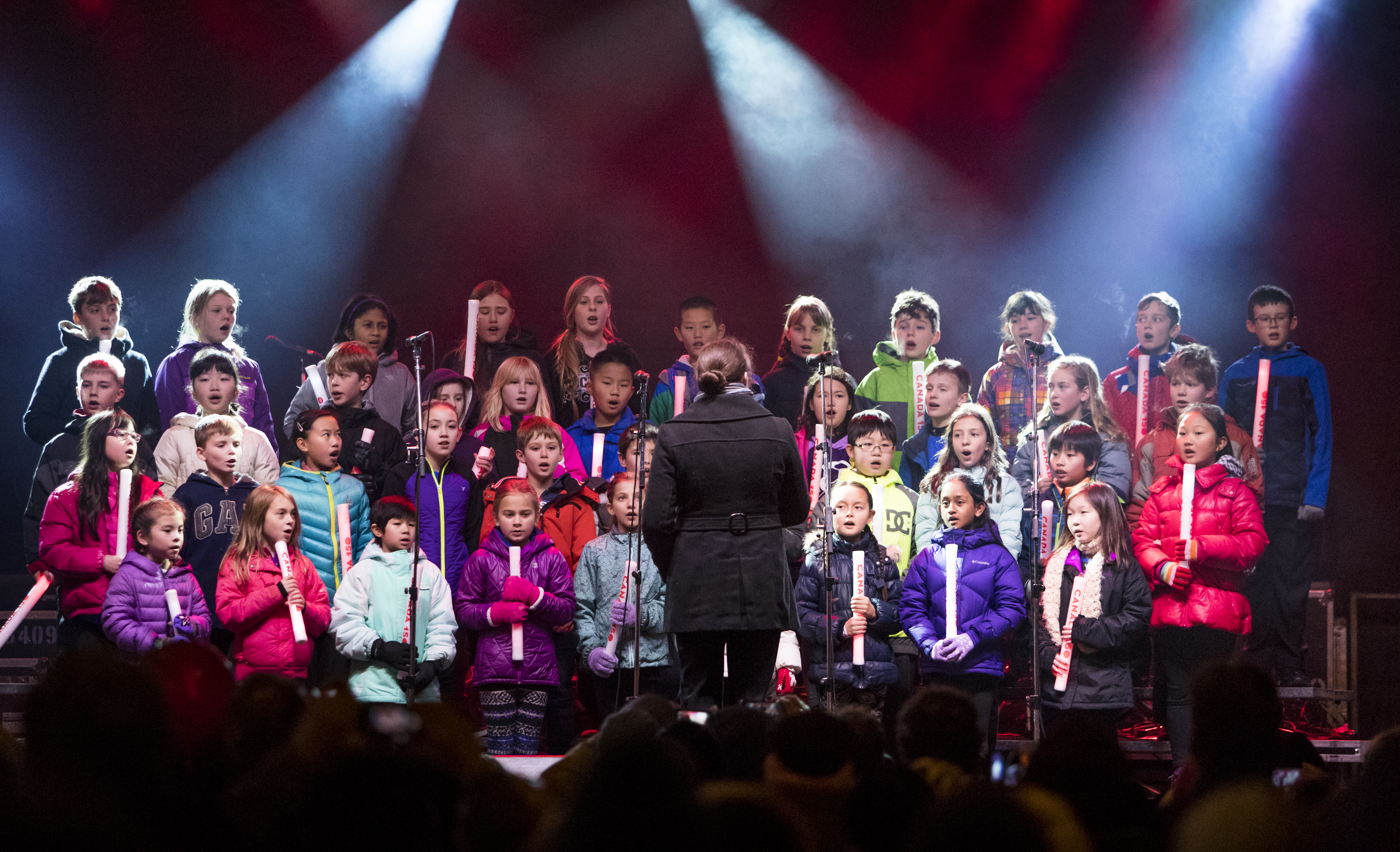 VICTORIA, B.C.: DECEMBER 31, 2016- O Canada is sung by École Campus View Elementary School during the first Night Celebrations in the Inner Harbour in Victoria, British Columbia on December 31, 2016. (KEVIN LIGHT).