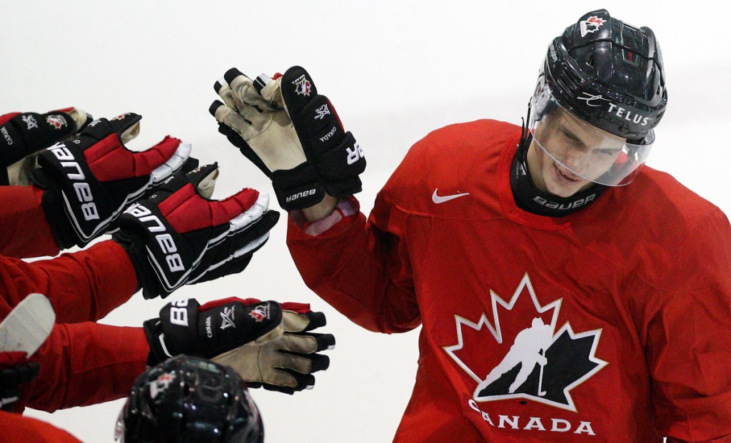 VICTORIA , BC – DECEMBER 19: Michael DiPietro of Team Canada walks to the ice prior to an exhibition game versus of Team Switzerland at the IIHF World Junior Championships at the Save-on-Foods Memorial Centre on December 19, 2018 in Victoria, British Columbia, Canada. Team Canada defeated Team Switzerland.