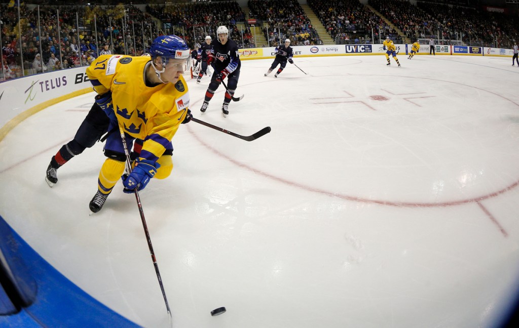 VICTORIA , BC – DECEMBER 29: Filip Sveningsson #17 of Sweden versus the United States at the IIHF World Junior Championships at the Save-on-Foods Memorial Centre on December 29, 2018 in Victoria, British Columbia, Canada. © 2019 KEVIN LIGHT