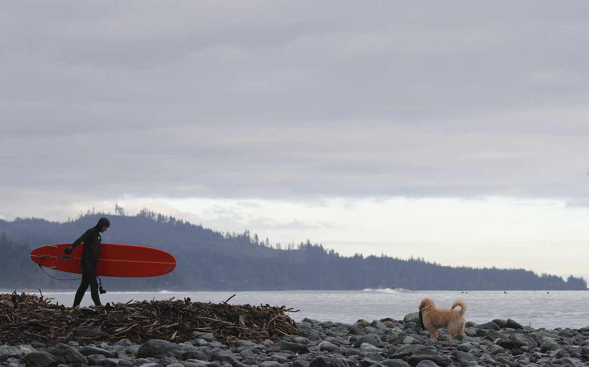 A surfer carves on the lip of wave at Jordan River on Vancouver Island, British Columbia Canada on January 25th, 2019.Kayaker and member of the Hurricane Riders James Manke carves back into a larger than normal wave in Jordan River, British Columbia Canada on January 25th, 2019.A surfer carries his board along the rocks in Jordan River, British Columbia Canada on January 25th, 2019.Kayakers Lee Phillips and James Manke ride their sea kayaks in Jordan River, British Columbia Canada on January 25th, 2019.Surfers, Kayakers and Stand Up Paddle Boarders enjoy a larger than normal swell in Jordan River, British Columbia Canada on January 25th, 2019.A surfer rides the barrel of a wave as a tug boat works in the background during a late afternoon session at Jordan River, located on the west coast of Vancouver Island, British Columbia, approximately 70 km west of Victoria on January 25, 2019.A surfers carries their board into the water during a larger than normal swell in Jordan River, British Columbia Canada on January 25th, 2019.A surfer smokes a cigarette following a session in Jordan River, British Columbia Canada on January 25th, 2019.A Stand Up Paddle Boarder looks for a wave in Jordan River, British Columbia Canada on January 25th, 2019.Lee Phillips posses for a portrait following a five hour kayaking session in Jordan River, British Columbia Canada on January 25th, 2019.A surfer rides a larger than normal wave as a tug boat works in the background in Jordan River, British Columbia Canada on January 25th, 2019.