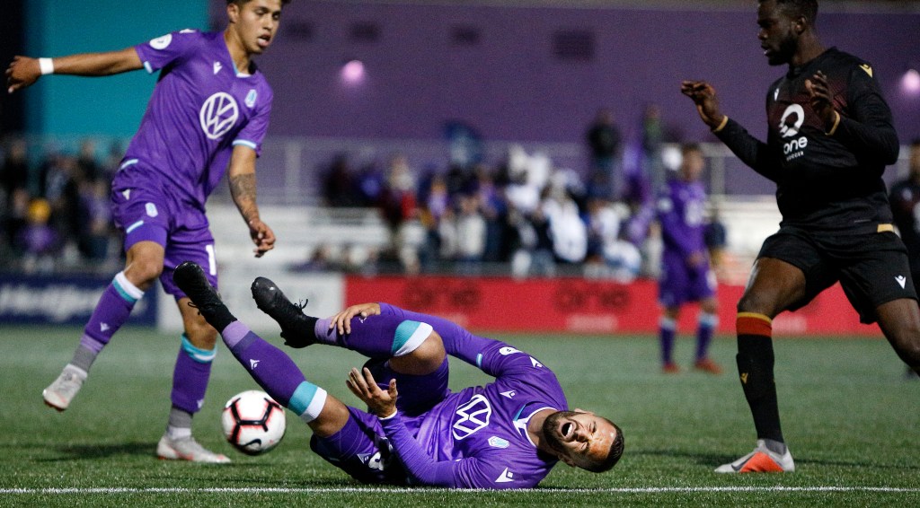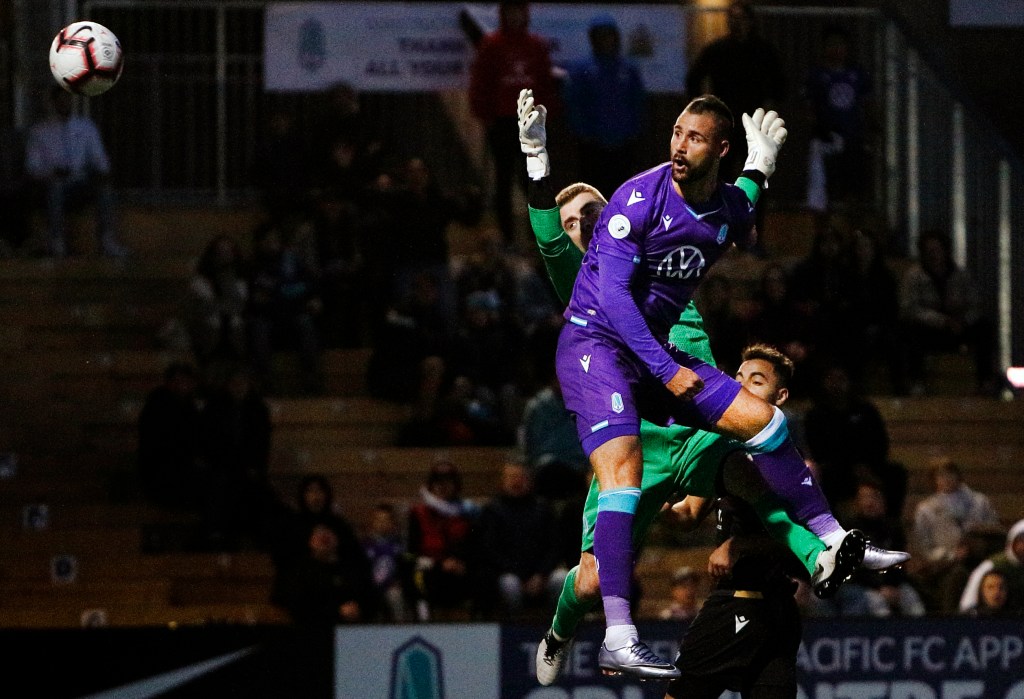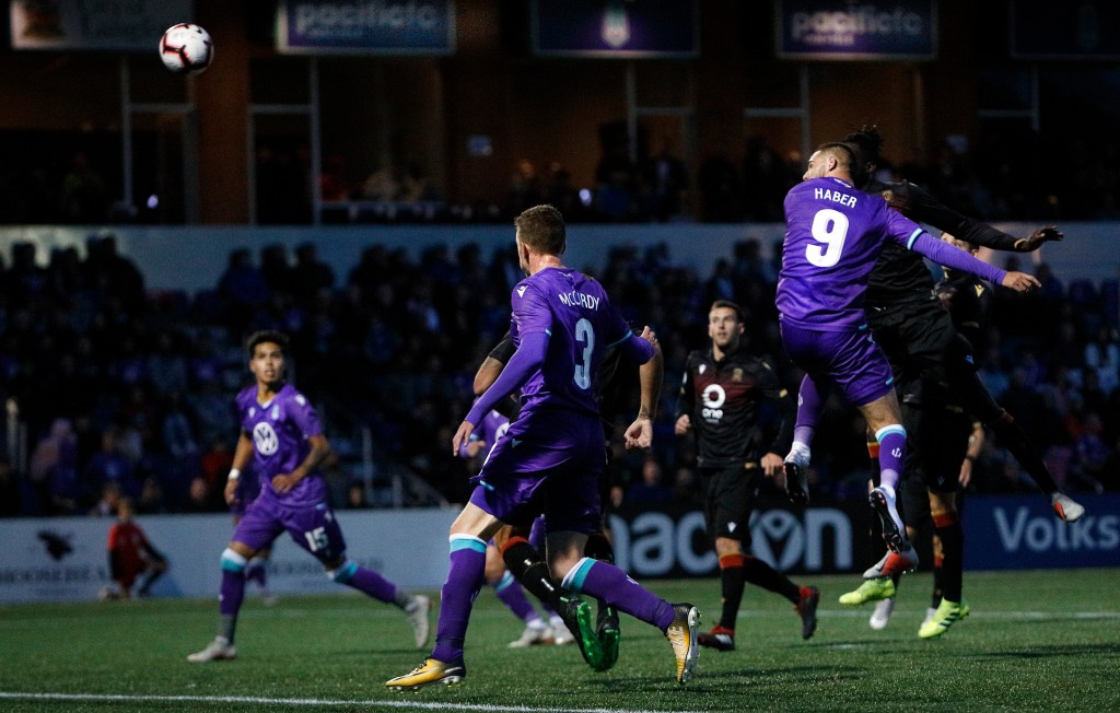VICTORIA, B.C.: MAY 1, 2019- Tyson Farago #1 of the Winnipeg Valour FC kicks the ball downfield against Pacific FC at Westhills Stadium in Langford, British Columbia on May 1, 2019. (KEVIN LIGHT).VICTORIA, B.C.: MAY 1, 2019- Jose Hernndez #15 of Pacific FC heads the ball towards the goal while being chased by Jordan Murrell #4 of the Winnipeg Valour FC at Westhills Stadium in Langford, British Columbia on May 1, 2019. (KEVIN LIGHT).VICTORIA, B.C.: MAY 1, 2019- Noah Verhoeven #19 of Pacific FC sits on the field after being checked by Diego Gutirrez #8 of the Winnipeg Valour FC at Westhills Stadium in Langford, British Columbia on May 1, 2019. (KEVIN LIGHT).VICTORIA, B.C.: MAY 1, 2019- Diego Gutirrez #8 of the Winnipeg Valour FC is given a yellow card for standing over and appearing to talk to Noah Verhoeven #19 of Pacific FC after checking him to the ground at Westhills Stadium in Langford, British Columbia on May 1, 2019. (KEVIN LIGHT).VICTORIA, B.C.: MAY 1, 2019- Terran Campbell #14 of Pacific FC follows the ball after being checked by a member of Winnipeg Valour FC at Westhills Stadium in Langford, British Columbia on May 1, 2019. (KEVIN LIGHT).VICTORIA, B.C.: MAY 1, 2019- Marcus Haber #9 of Pacific FC runs directs the ball toward the Winnipeg Valour FC goal at Westhills Stadium in Langford, British Columbia on May 1, 2019. (KEVIN LIGHT).VICTORIA, B.C.: MAY 1, 2019- Marcus Haber #9 of Pacific FC runs directs the ball toward the Winnipeg Valour FC goal at Westhills Stadium in Langford, British Columbia on May 1, 2019. (KEVIN LIGHT).VICTORIA, B.C.: MAY 1, 2019- Ben Fisk #10 of Pacific FC celebrates a goal by teammate Jos Hernndez #15 against the Winnipeg Valour FC at Westhills Stadium in Langford, British Columbia on May 1, 2019. (KEVIN LIGHT).VICTORIA, B.C.: MAY 1, 2019- Jose Hernndez #15 of Pacific FC celebrates following scoring a goal against the Winnipeg Valour FC at Westhills Stadium in Langford, British Columbia on May 1, 2019. (KEVIN LIGHT).VICTORIA, B.C.: MAY 1, 2019- Noah Verhoeven #19 of Pacific FC celebrates with teammate Jose Hernndez #15 following a goal against the Winnipeg Valour FC at Westhills Stadium in Langford, British Columbia on May 1, 2019. (KEVIN LIGHT).VICTORIA, B.C.: MAY 1, 2019- Fans celebrate following a goal by Jos Hernndez #15 of Pacific FC against the Winnipeg Valour FC at Westhills Stadium in Langford, British Columbia on May 1, 2019. (KEVIN LIGHT).VICTORIA, B.C.: MAY 1, 2019- Marcus Haber #9 of Pacific FC runs directs the ball toward the Winnipeg Valour FC goal at Westhills Stadium in Langford, British Columbia on May 1, 2019. (KEVIN LIGHT).VICTORIA, B.C.: MAY 1, 2019- Marcus Haber #9 of Pacific FC runs directs the ball toward the Winnipeg Valour FC goal at Westhills Stadium in Langford, British Columbia on May 1, 2019. (KEVIN LIGHT).VICTORIA, B.C.: MAY 1, 2019- Marcus Haber #9 of Pacific FC runs attempts a shot toward the Winnipeg Valour FC goal at Westhills Stadium in Langford, British Columbia on May 1, 2019. (KEVIN LIGHT).VICTORIA, B.C.: MAY 1, 2019- Jose Hernndez #15 of Pacific FC dribbles the ball against the Winnipeg Valour FC at Westhills Stadium in Langford, British Columbia on May 1, 2019. (KEVIN LIGHT).VICTORIA, B.C.: MAY 1, 2019- Victor Blasco #23 of Pacific FC runs grabs his shin after being checked by Skylar