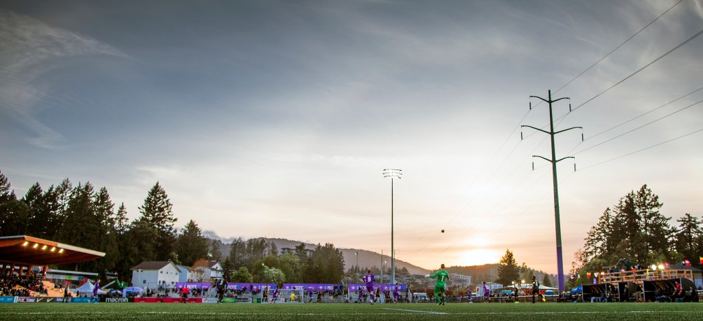 Last night became pretty cold and windy after the sun fell behind the mountain as the game began at 8pm. But as the summer approaches I have a feeling fans from all over Victoria and Vancouver Island will become aware just how fun the soccer atmosphere is at Westhills Stadium.