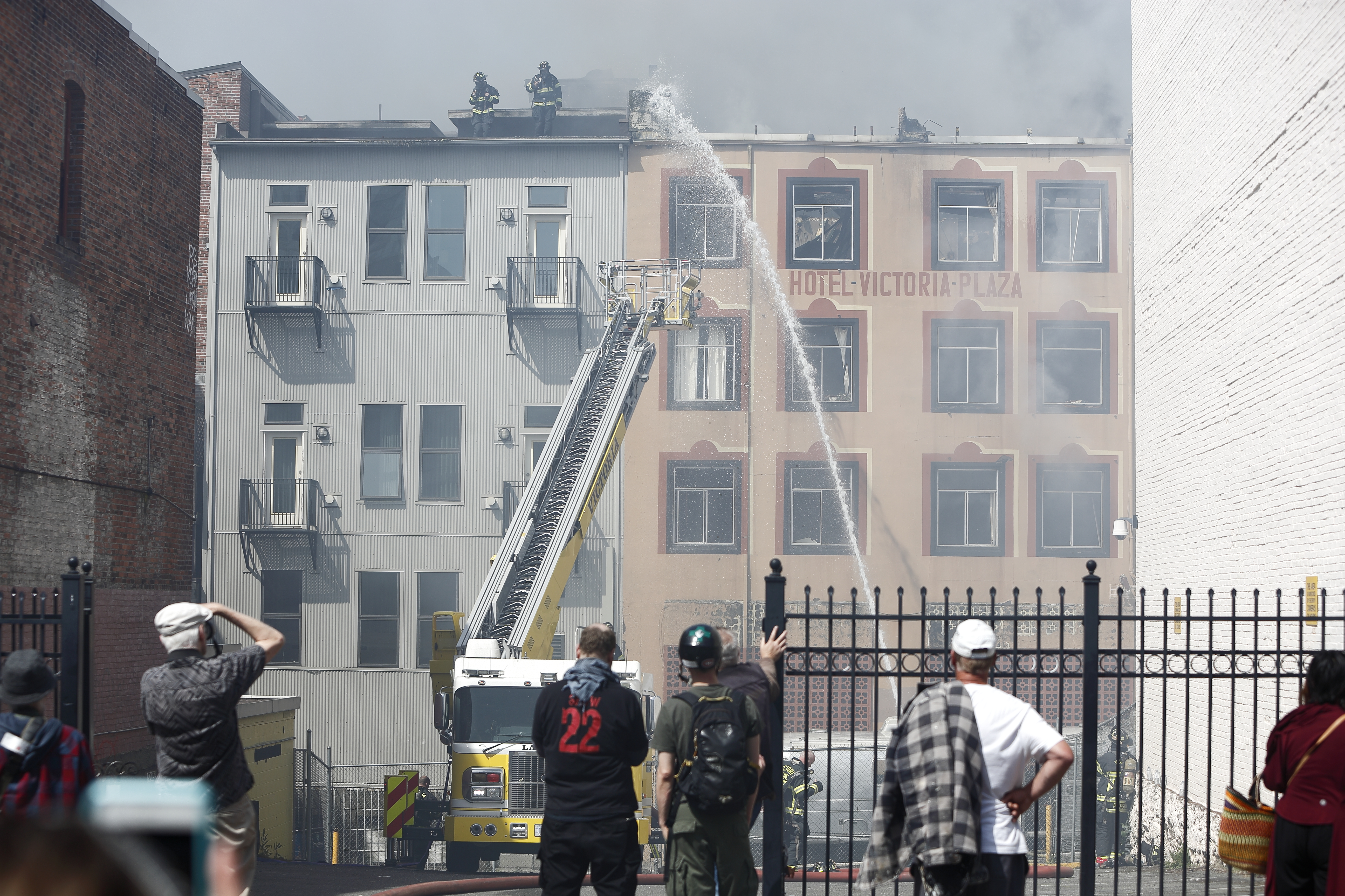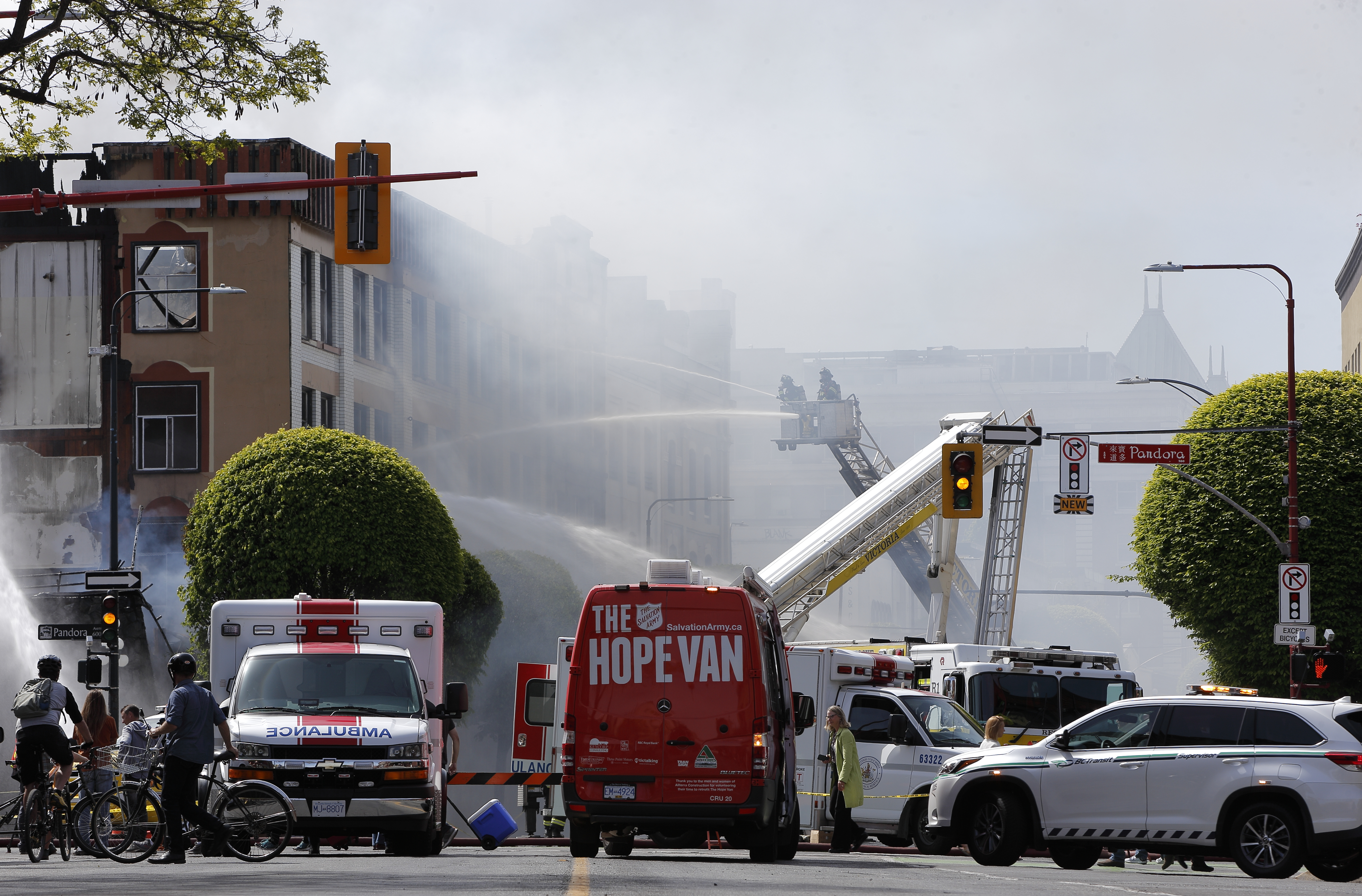 VICTORIA, B.C.: MAY 6, 2019- Victoria firefighters work to extinguish a blaze at the former Monty’s Showroom Pub and Plaza Hotel. Victoria, British Columbia on May 6, 2019. (KEVIN LIGHT).VICTORIA, B.C.: MAY 6, 2019- Victoria firefighters work to extinguish a blaze at the former Monty’s Showroom Pub and Plaza Hotel. Victoria, British Columbia on May 6, 2019. (KEVIN LIGHT).VICTORIA, B.C.: MAY 6, 2019- Victoria firefighters with the help of a drone work to extinguish a blaze at the former Monty’s Showroom Pub and Plaza Hotel. Victoria, British Columbia on May 6, 2019. (KEVIN LIGHT).VICTORIA, B.C.: MAY 6, 2019- Victoria firefighters work to extinguish a blaze at the former Monty’s Showroom Pub and Plaza Hotel. Victoria, British Columbia on May 6, 2019. (KEVIN LIGHT).VICTORIA, B.C.: MAY 6, 2019- Victoria firefighters work to extinguish a blaze at the former Monty’s Showroom Pub and Plaza Hotel. Victoria, British Columbia on May 6, 2019. (KEVIN LIGHT).VICTORIA, B.C.: MAY 6, 2019- A women walks through smoke along Government street as Victoria firefighters work to extinguish a blaze at the former Monty’s Showroom Pub and Plaza Hotel. Victoria, British Columbia on May 6, 2019. (KEVIN LIGHT).VICTORIA, B.C.: MAY 6, 2019- Victoria firefighters work to extinguish a blaze at the former Monty’s Showroom Pub and Plaza Hotel. Victoria, British Columbia on May 6, 2019. (KEVIN LIGHT).VICTORIA, B.C.: MAY 6, 2019- A man walks along Broad street as Victoria firefighters work to extinguish a blaze at the former Monty’s Showroom Pub and Plaza Hotel. Victoria, British Columbia on May 6, 2019. (KEVIN LIGHT).VICTORIA, B.C.: MAY 6, 2019- Victoria firefighters work to extinguish a blaze at the former Monty’s Showroom Pub and Plaza Hotel. Victoria, British Columbia on May 6, 2019. (KEVIN LIGHT).VICTORIA, B.C.: MAY 6, 2019- A women talks on her phone as Victoria firefighters work to extinguish a blaze at the former Monty’s Showroom Pub and Plaza Hotel. Victoria, British Columbia on May 6, 2019. (KEVIN LIGHT).VICTORIA, B.C.: MAY 6, 2019- Victoria firefighters work to extinguish a blaze at the former Monty’s Showroom Pub and Plaza Hotel. Victoria, British Columbia on May 6, 2019. (KEVIN LIGHT).VICTORIA, B.C.: MAY 6, 2019- Victoria firefighters work to extinguish a blaze at the former Monty’s Showroom Pub and Plaza Hotel. Victoria, British Columbia on May 6, 2019. (KEVIN LIGHT).VICTORIA, B.C.: MAY 6, 2019- Onlookers watch from Broad street as Victoria firefighters work to extinguish a blaze at the former Monty’s Showroom Pub and Plaza Hotel. Victoria, British Columbia on May 6, 2019. (KEVIN LIGHT).VICTORIA, B.C.: MAY 6, 2019- Victoria firefighters work to extinguish a blaze at the former Monty’s Showroom Pub and Plaza Hotel. Victoria, British Columbia on May 6, 2019. (KEVIN LIGHT).VICTORIA, B.C.: MAY 6, 2019- Victoria firefighters work to extinguish a blaze at the former Monty’s Showroom Pub and Plaza Hotel. Victoria, British Columbia on May 6, 2019. (KEVIN LIGHT).